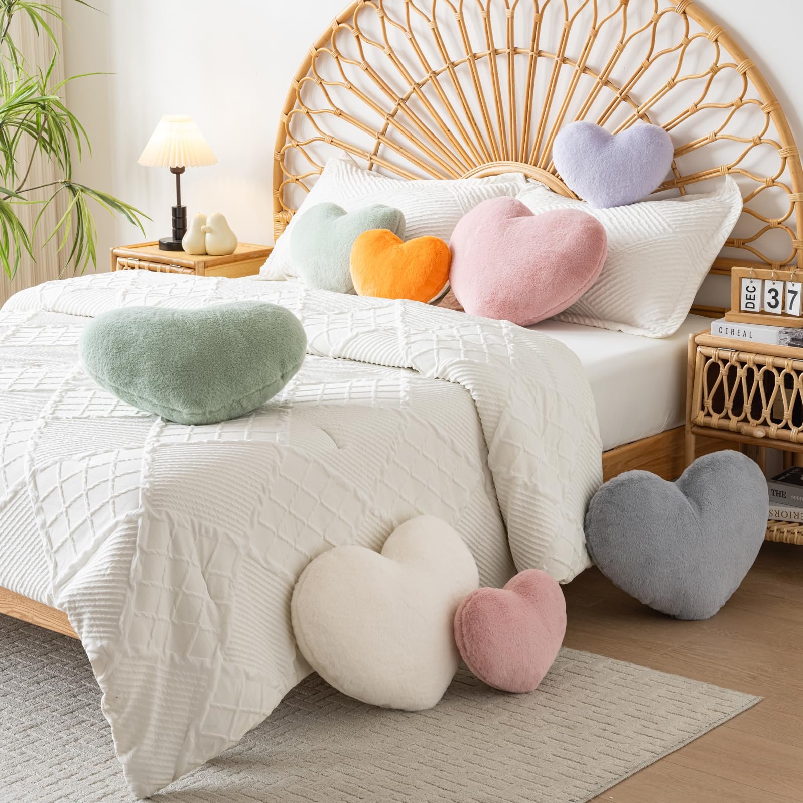 · COLORS AND SIZES: These heart throw pillows are versatile, making them ideal for decorating any space, be it the living room, bedroom, or even as cute throw pillows for bed to complement your decor.