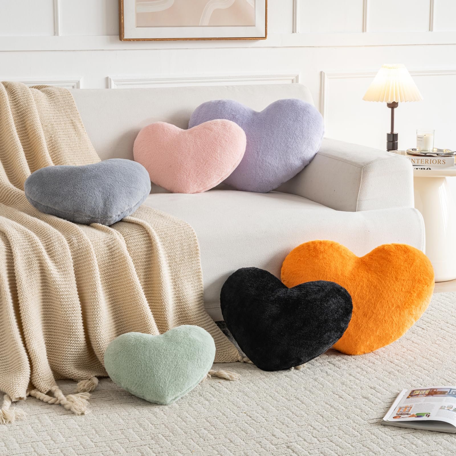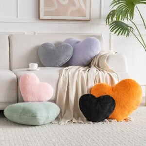 · PREMIUM MATERIAL: Heart pillow is crafted from ultra-soft faux rabbit fur. With a heart-shaped design that brings a cute touch to any couch or bed, these decorative throw pillows are perfect for cozying up or enhancing room aesthetics.